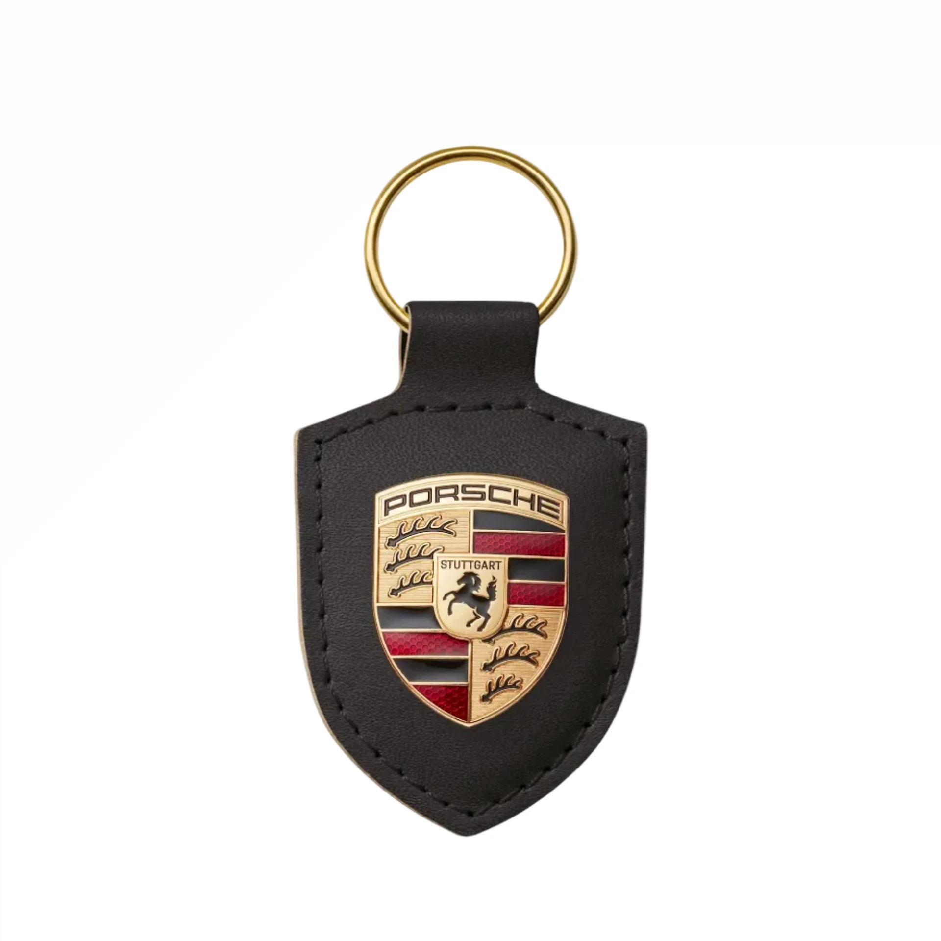 High-quality key ring made from genuine leather with the unmistakable Porsche crest.